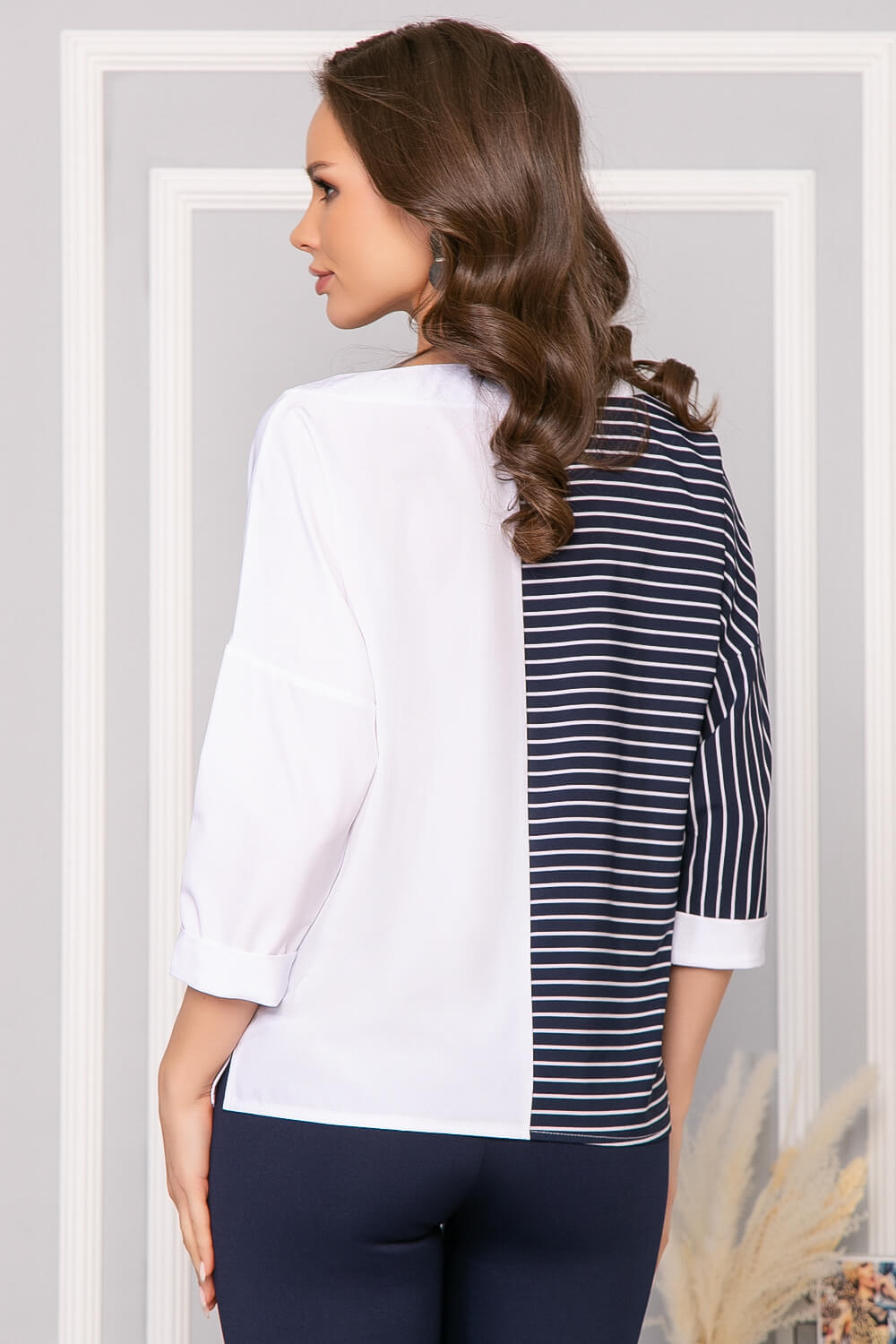 Блуза свободного силуэта, выполненная из приятной к телу ткани будет хорошо сочетаться с Вашим деловым гардеробом. Рукав втачной, три четверти, линия плеча спущена.