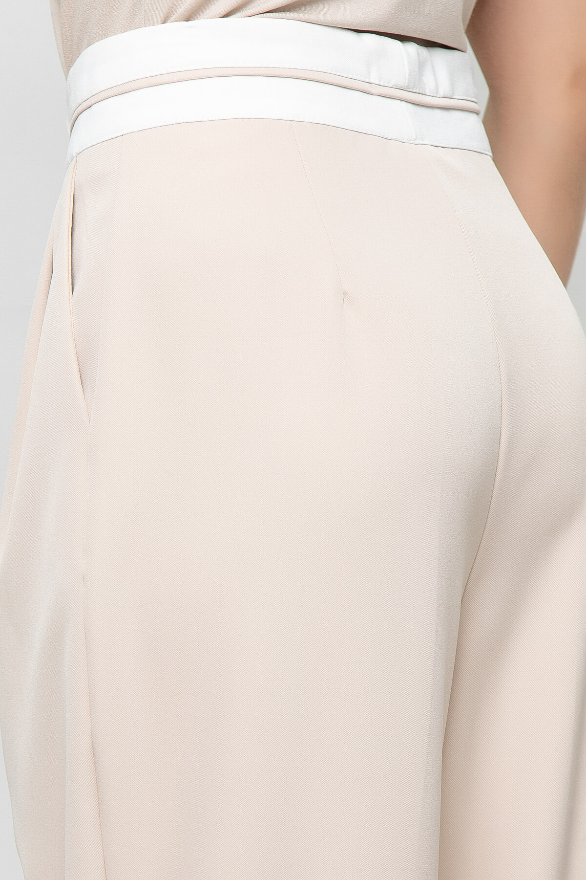 Удобные, но при этом модные брюки прекрасно дополнят Ваш гардероб! Сегодня штаны прямого кроя можно увидеть не только в официальном стиле, но и в повседневном. Брюки украшает завышенная талия и втачной белый пояс. У данной модели есть карманы.