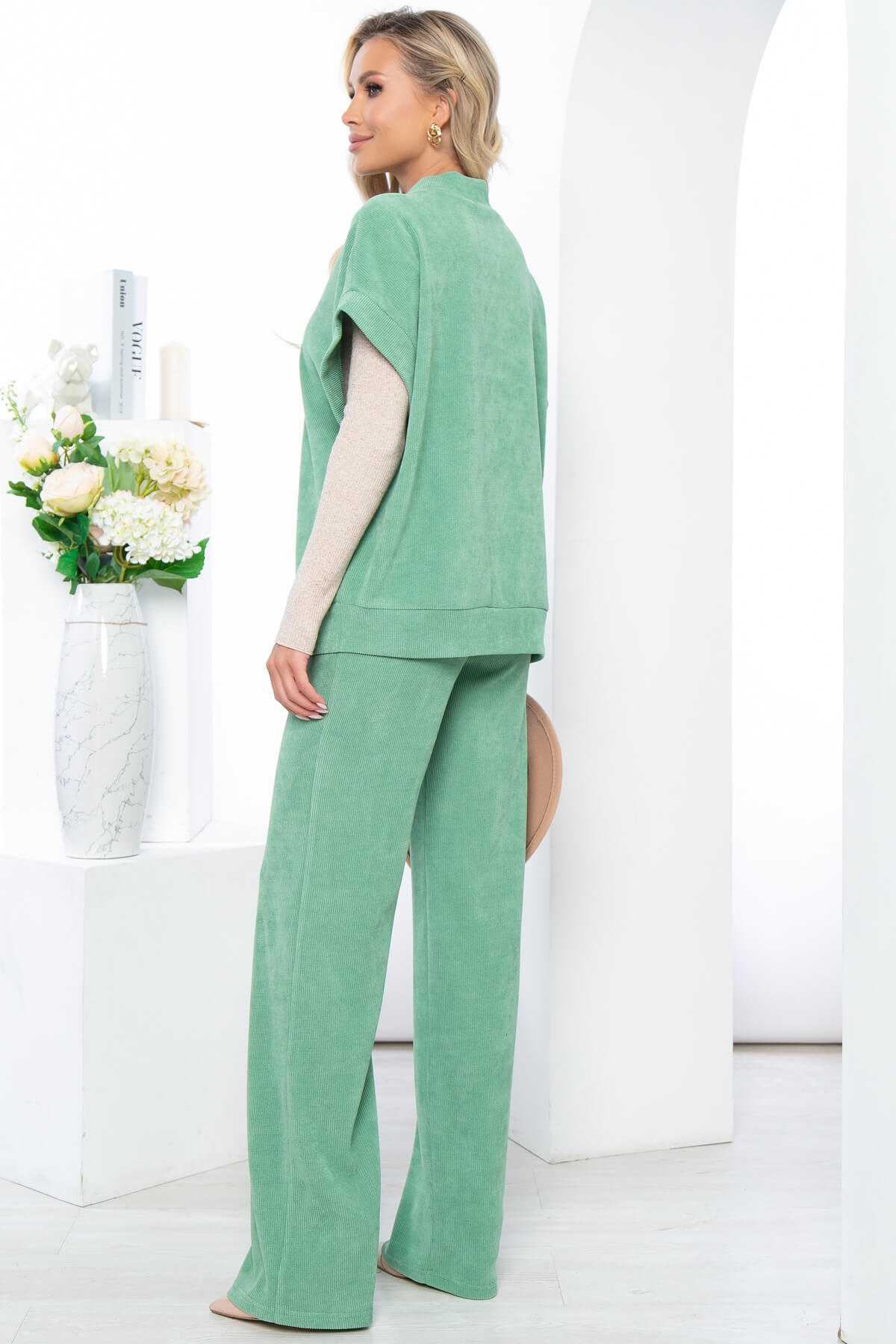 Костюм-двойка, состоящий из прямых брюк с высокой посадкой на резинке и жилета свободного кроя. Преимущество комплекта в том, что вы сможете самостоятельно носить как жакет, так и брюки. В повседневном образе смело сочетайте с лоферами или ботинками, а если нужен более официальный образ, с туфлями на каблуке.