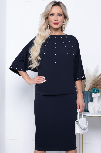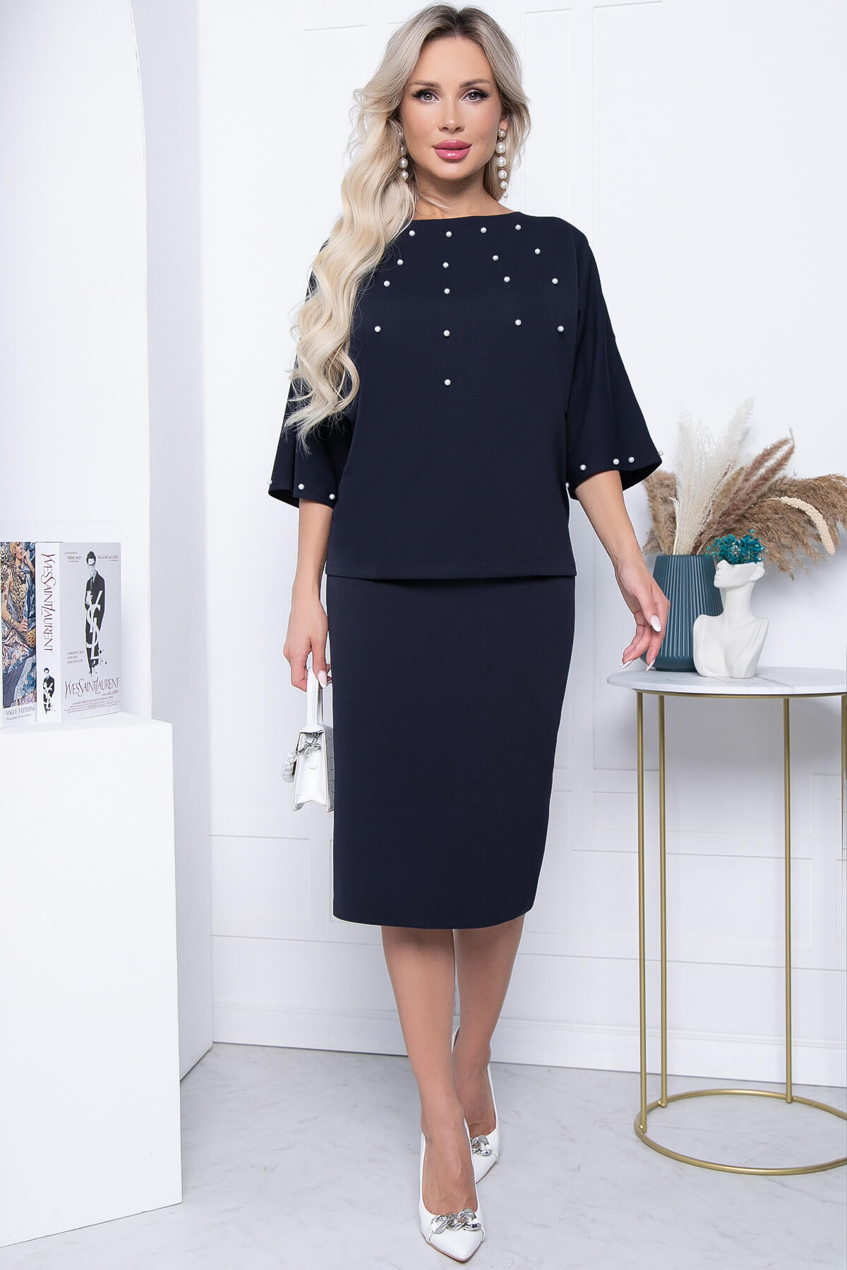 Элегантный деловой костюм, состоящий из двух предметов: блузы свободного силуэта и юбки прямого кроя. Изделие украшают свободные рукава с проймой "Летучая мышь". Юбка прямого силуэта на резинке. Комплект неприхотлив в уходе, а грамотные нюансы подчеркнут утончённый вкус своей обладательницы.
