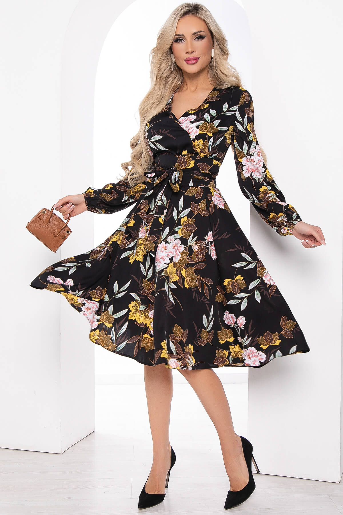 Невероятно женственное платье с цветочным принтом поможет в создании неповторимого образа. Красивый V-образный вырез с имитацией запаха подчеркивает зону декольте. Пышный длинный рукав, по низу на резинке. В комплект входит широкий пояс из основной ткани. В таком платье можно провести прекрасный романтический вечер или сходить в кафе с подругами.