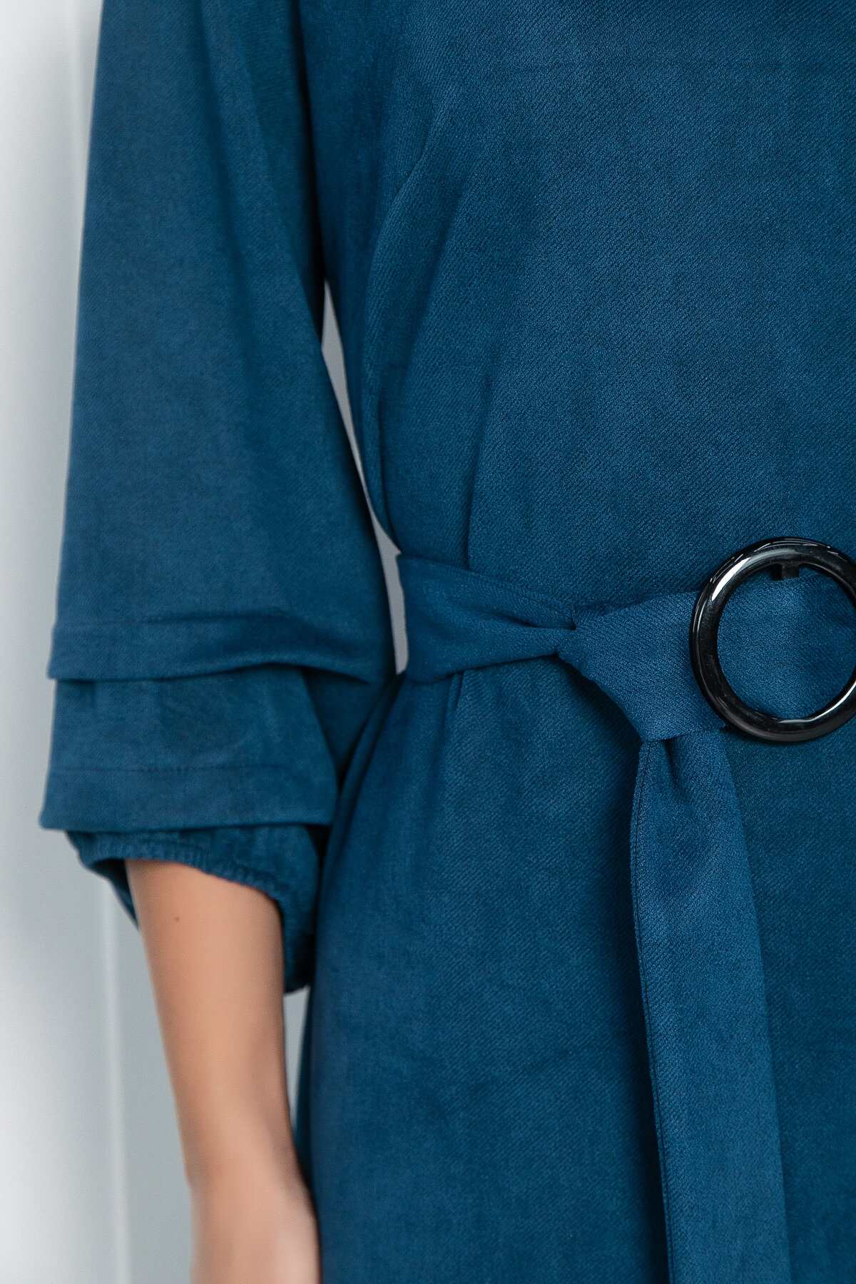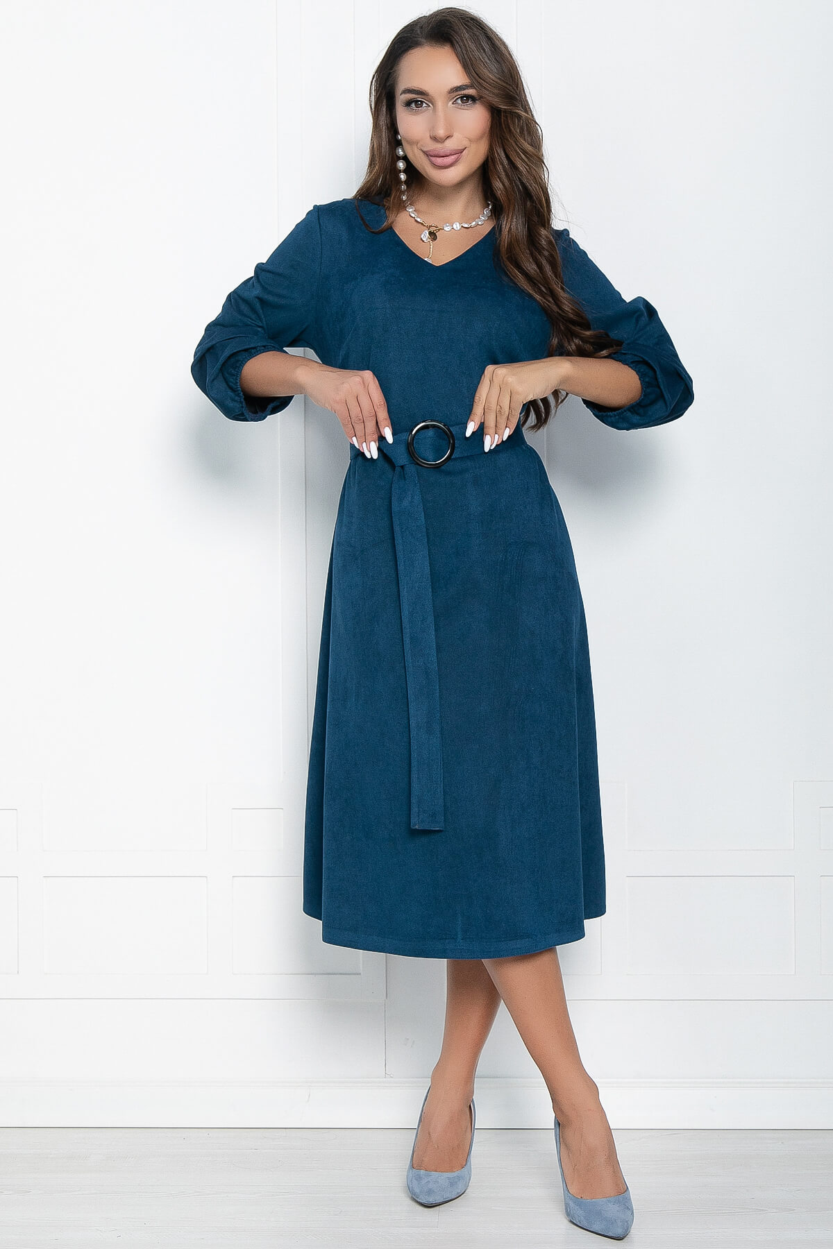 Платье из невероятно мягкого трикотажа с текстурой мелкой полоски. Этот наряд идеально подчеркнет вашу женственность благодаря акцентным рукавам и поясу на пряжке. V-образная горловина добавляет изысканности и шарма, делая образ более изящным и привлекательным. Идеально подойдет для особых событий или повседневной носки, придавая вам стиль и уверенность.