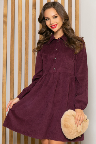 Очаровательно платье из вельвета обязательно впишется в ваш повседневный гардероб. Модель имеет комфортный длинный рукав на резинке. Юбка состоит из ниспадающих воланов. Линия талии слегка завышена, по переду платья планка, застёгивающаяся на функциональные пуговицы.