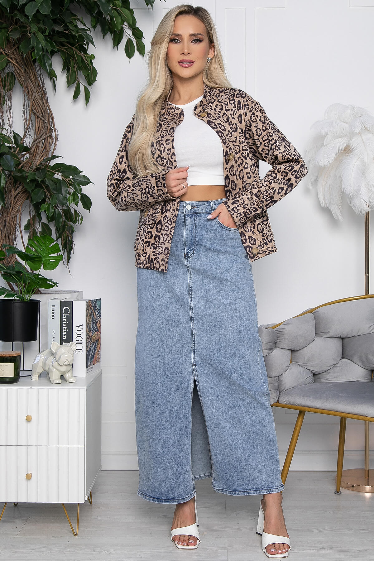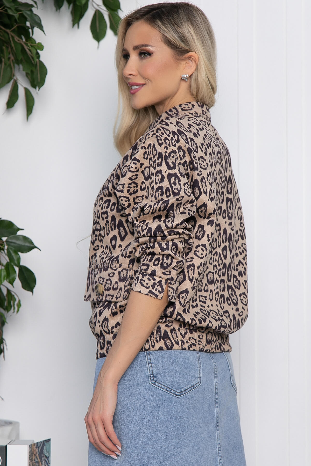 Трендовой жакет с леопардовой расцветкой - стильный выбор этого года! Идеальный образ на день рождения, романтический ужин, встречу с друзьями, свадьбу или другое торжество. Принт леопард подчеркнет вашу уникальность и оригинальность. В пояс вставлена резина. Длинные рукава с манжетой. По переду имитация карманов.