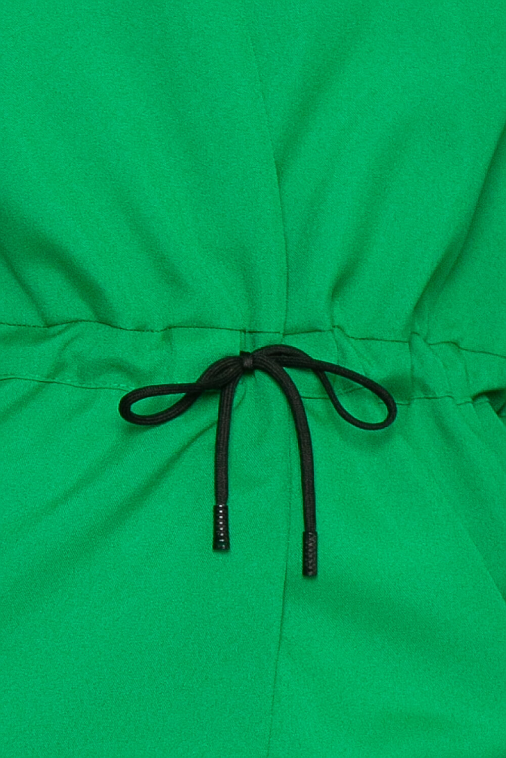 Жакет из костюмной ткани подойдёт как для офисных образов, так и стильно дополнит повседневные. Пояс-кулиска позволяет подчеркнуть линию талии. Рукав и отделка воротника оформлены чёрной мягкой резинкой. Рукав длинный, втачной, линия плеча спущена.