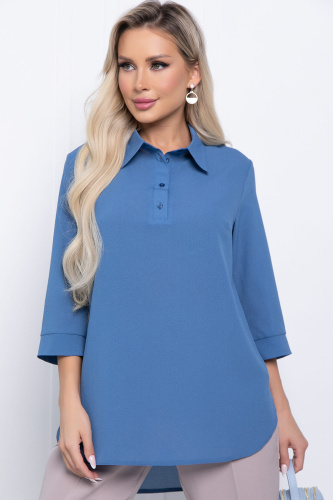 Лёгкая блуза свободного кроя в новом оттенке! Блуза с удлиненной спинкой, края скруглены, по бокам разрезы. Классический отложной воротник, по переду застёгивается на 4 пуговицы. Рукав три четверти, на манжете. Такая блуза подойдёт для создания офисного образа, а также её можно использовать в повседневных ансамблях.