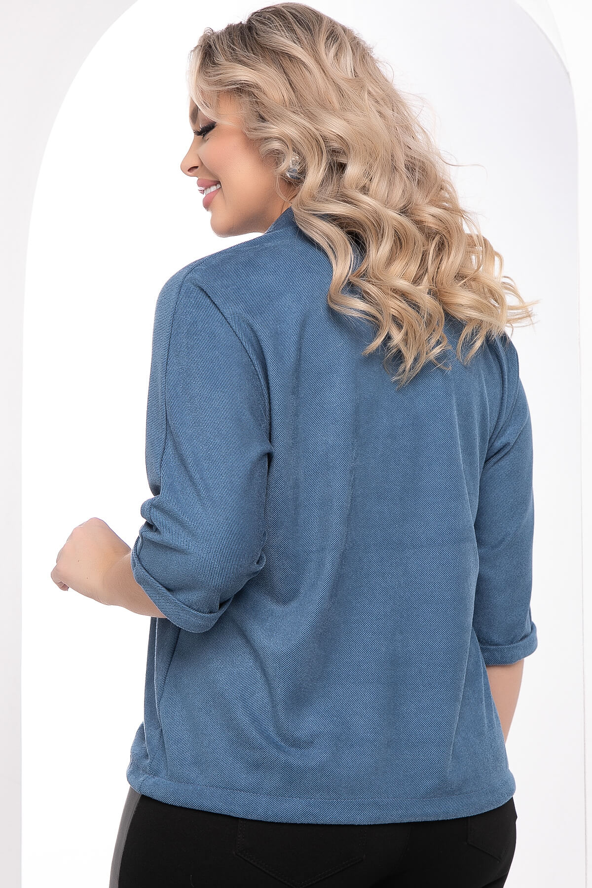 Туника из трикотажа подойдёт для создания повседневных образов. Туника имеет приятный синий оттенок, который является универсальным базовым цветом для повседневного и делового гардероба. Рукав цельнокроенный, по низу манжен из основной ткани. Вороник рубашечного типа на стойке. По низу изделия шнурок из основной ткани.