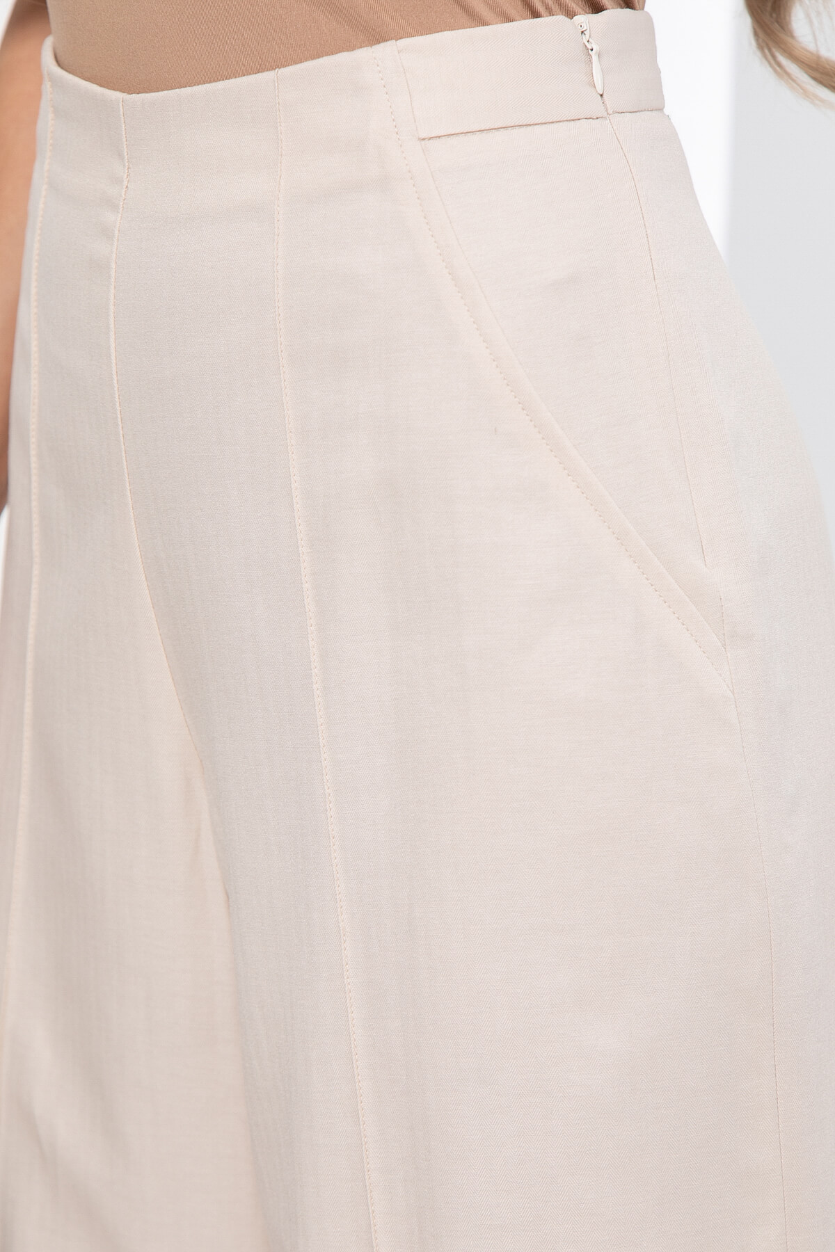Брюки оснащены потайной молнией по боковому шву.