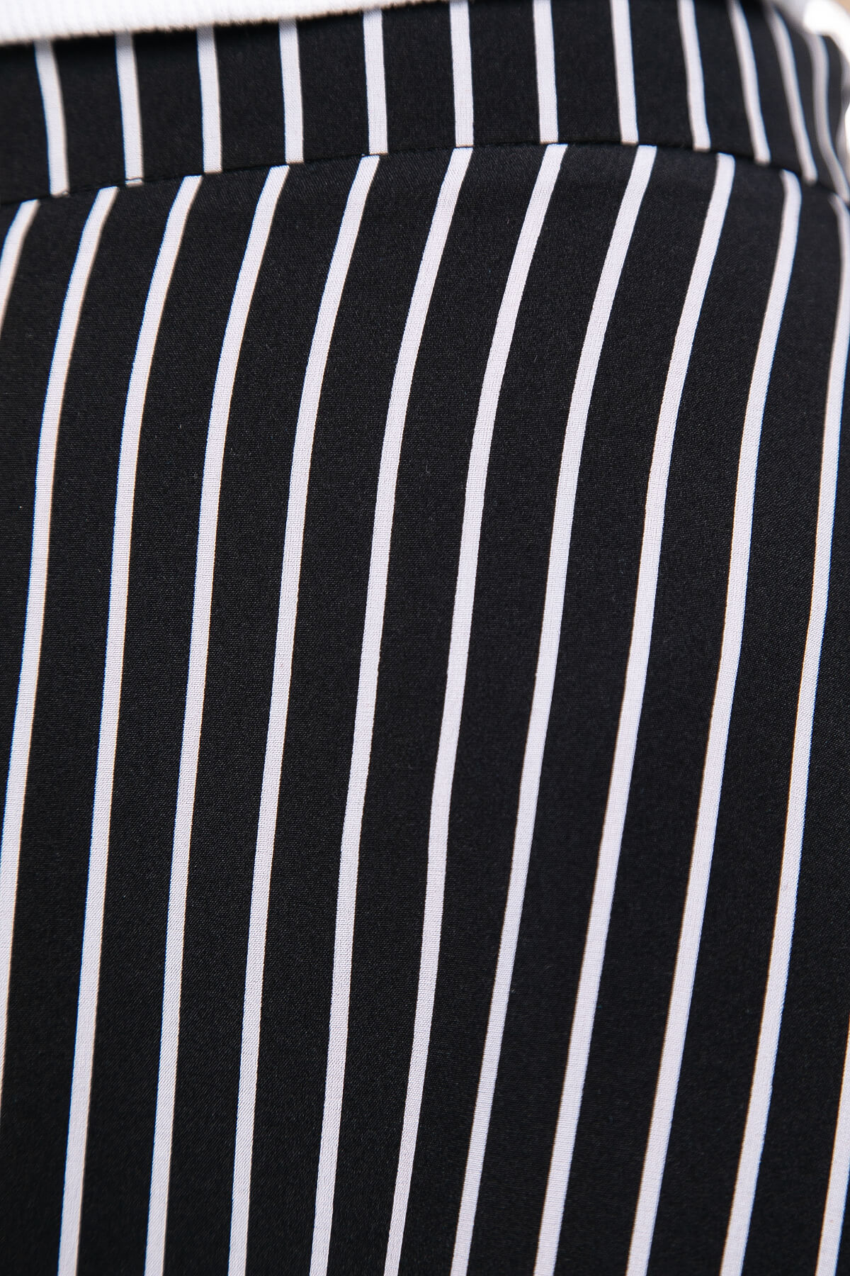 Оригинальные и стильные юбка-брюки в полоску для эффектного появления. Такая модель брюк идеальна для женщин любого возраста. Струящаяся ткань брюк визуально вытягивают и стройнят фигуру. Также брюки-юбка в сочетании с блузой, топом или водолазкой подойдут для повседневной носки и прогулок, а если надеть под них обувь на каблуке, то брюки превращаются в неотъемлемую часть вечернего образа. Талия на притачном поясе. Брюки оснащены потайной молнией по боковому шву.