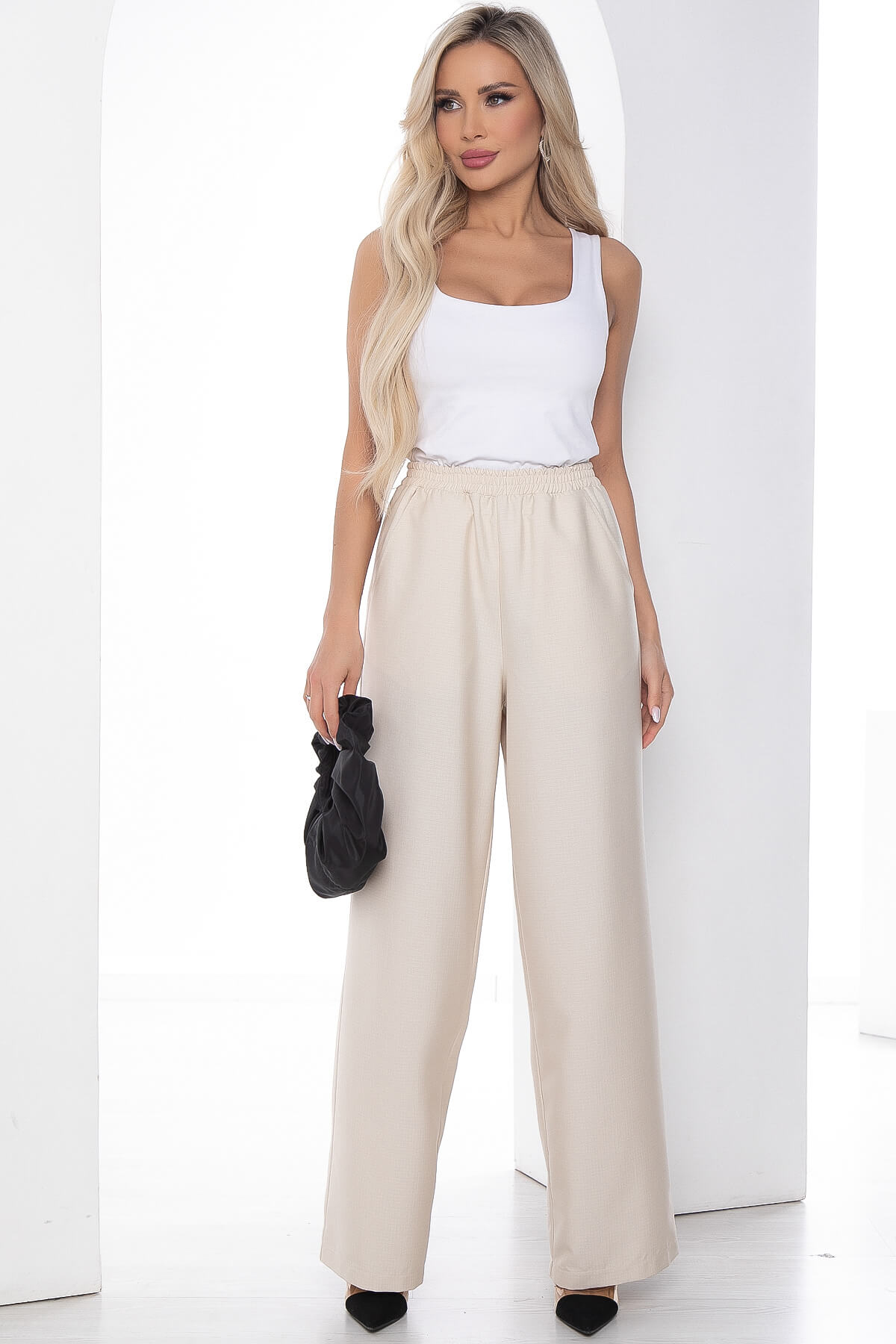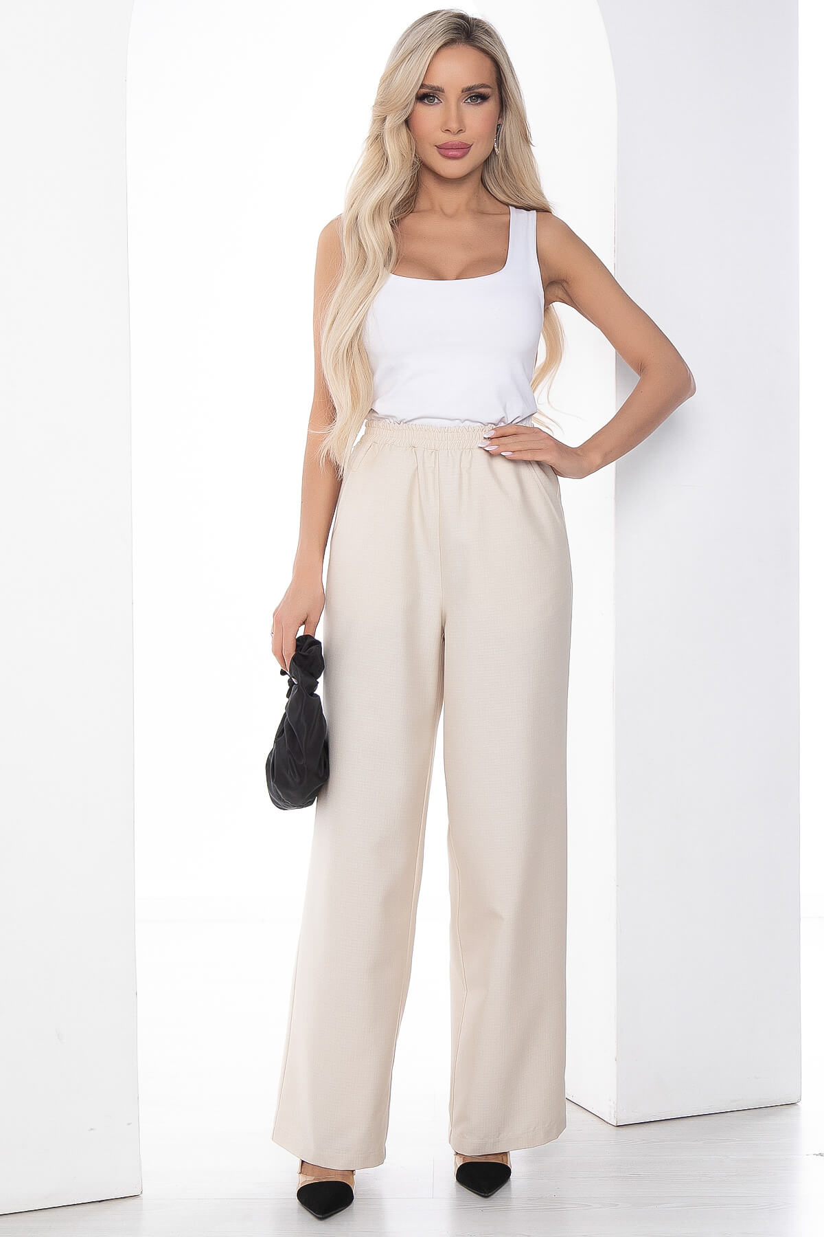 Лёгкие свободные брюки в оттенке слоновая кость – это более светлый оттенок белого, который выглядит очень элегантно и стильно. Он отлично сочетается с яркими цветами и может быть использован для создания нарядного образа. По талии брюки на резинке, что позволяет добиться комфортной посадки по фигуре. Подходит для различных случаев, от повседневных образов до официальных мероприятий. В боковых швах есть карманы. Выполнены из лёгкой костюмной ткани, которая идеально подходит на лето.