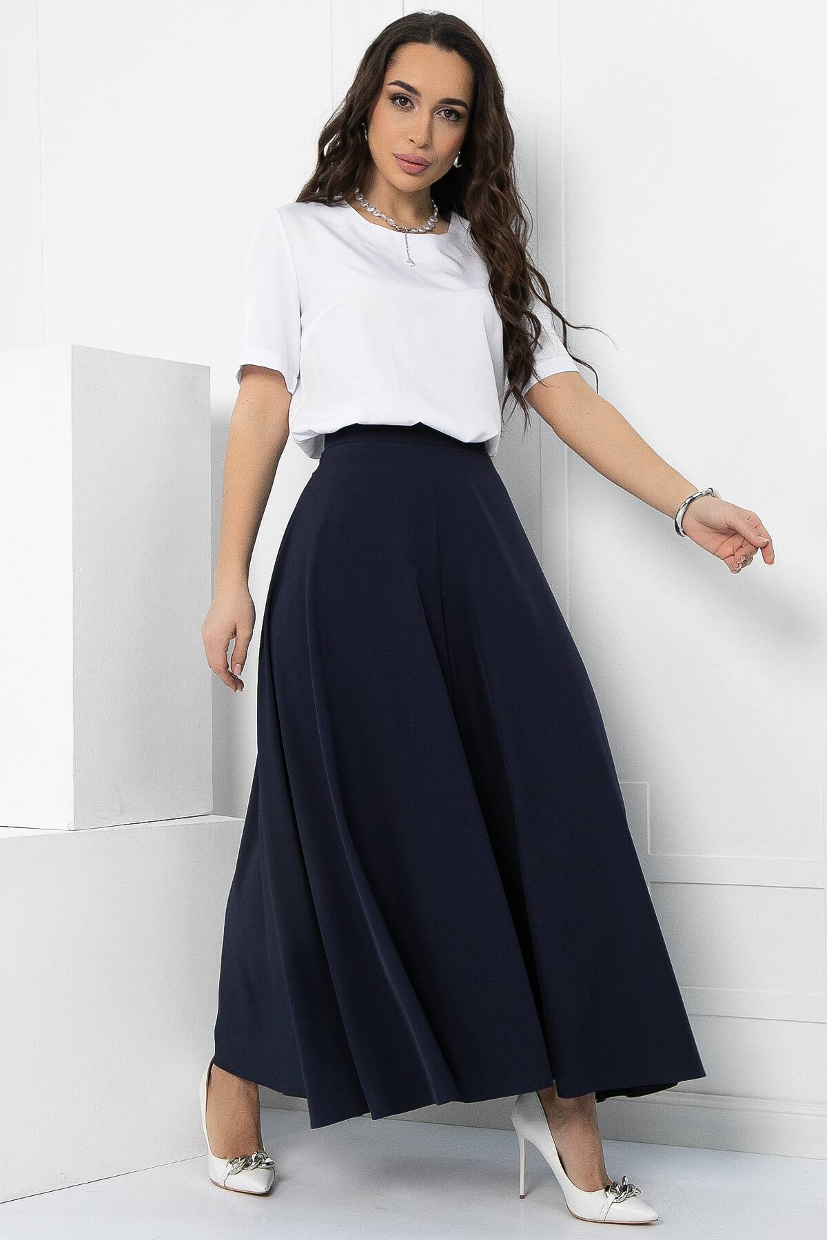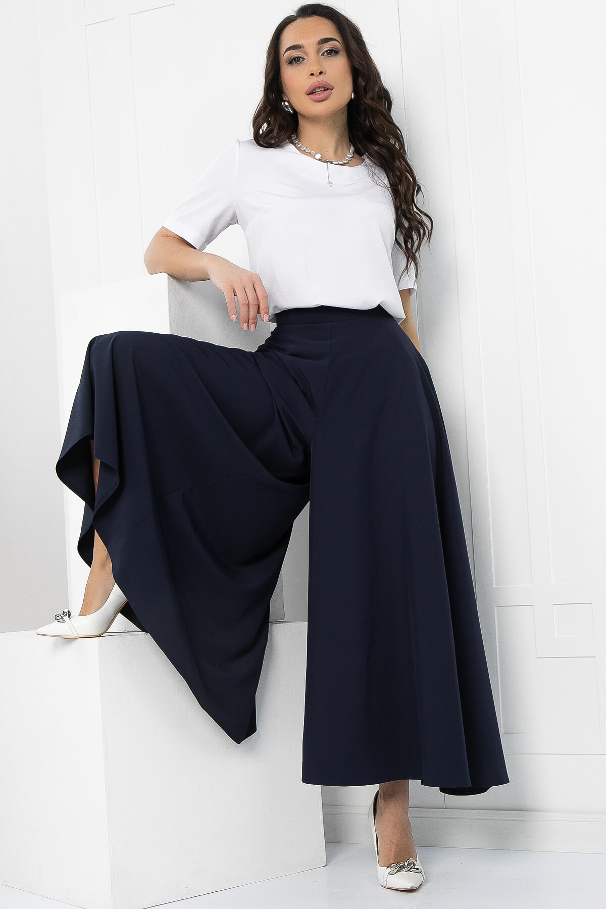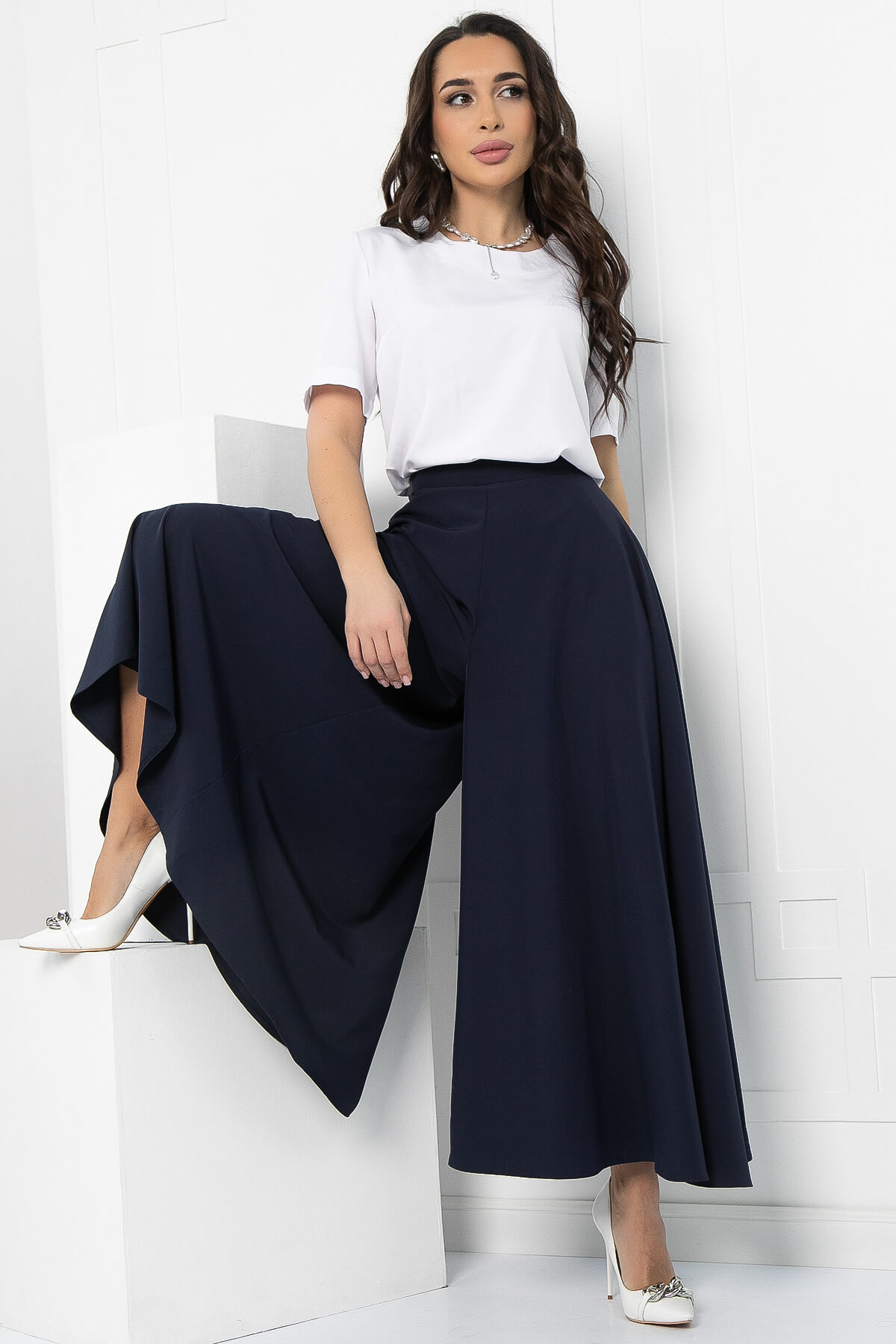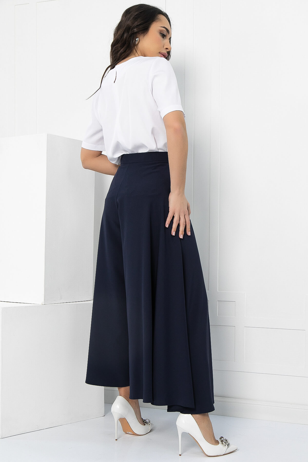 Оригинальные и стильные юбка-брюки для эффектного появления. Такая модель брюк идеальна для женщин любого возраста. Струящаяся ткань брюк визуально вытягивает и стройнит фигуру. Также брюки-юбка в сочетании с блузой, топом или водолазкой подойдут для повседневной носки и прогулок, а если надеть под них обувь на каблуке, то брюки превращаются в неотъемлемую часть вечернего образа. Талия на притачном поясе. Брюки оснащены потайной молнией по боковому шву.