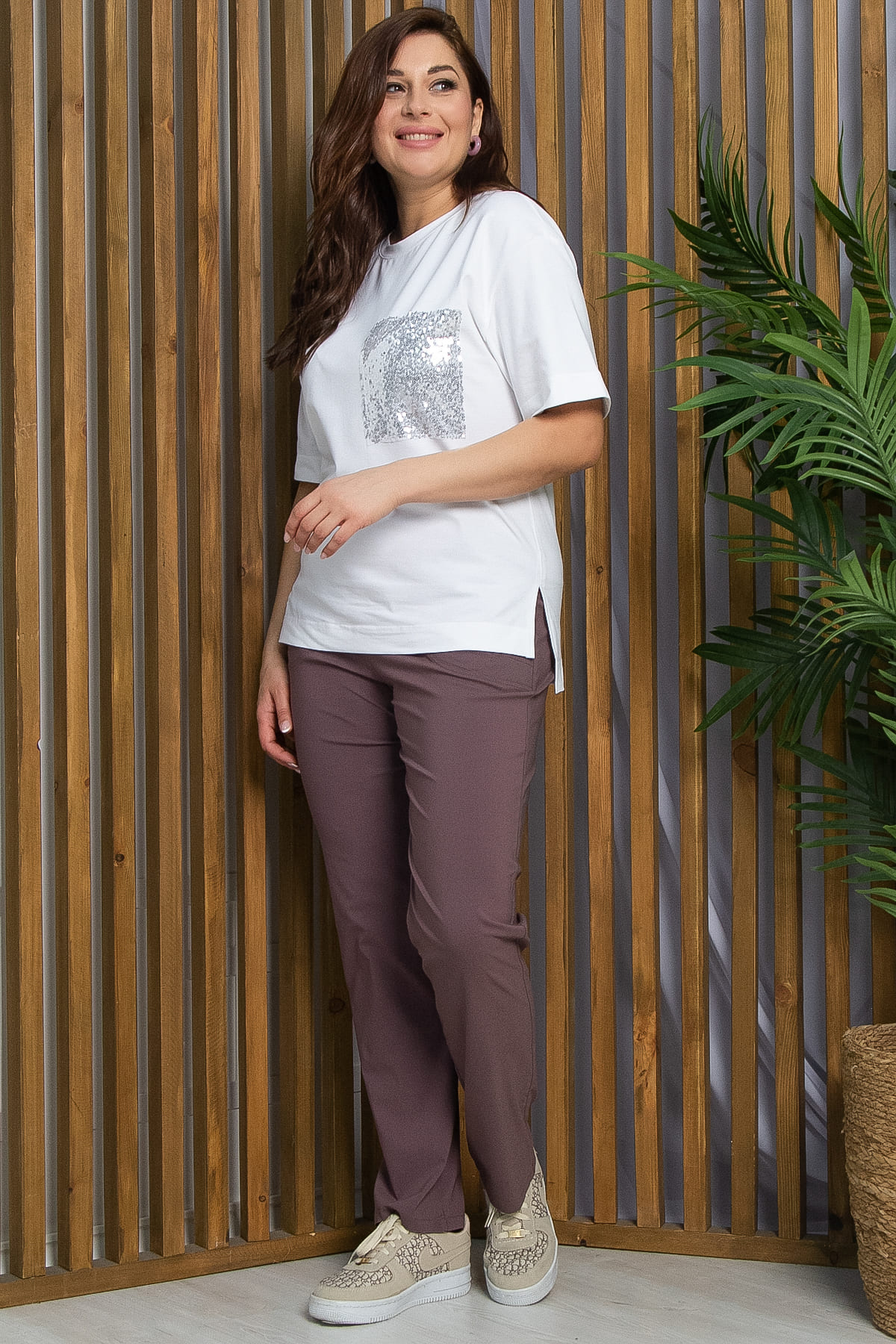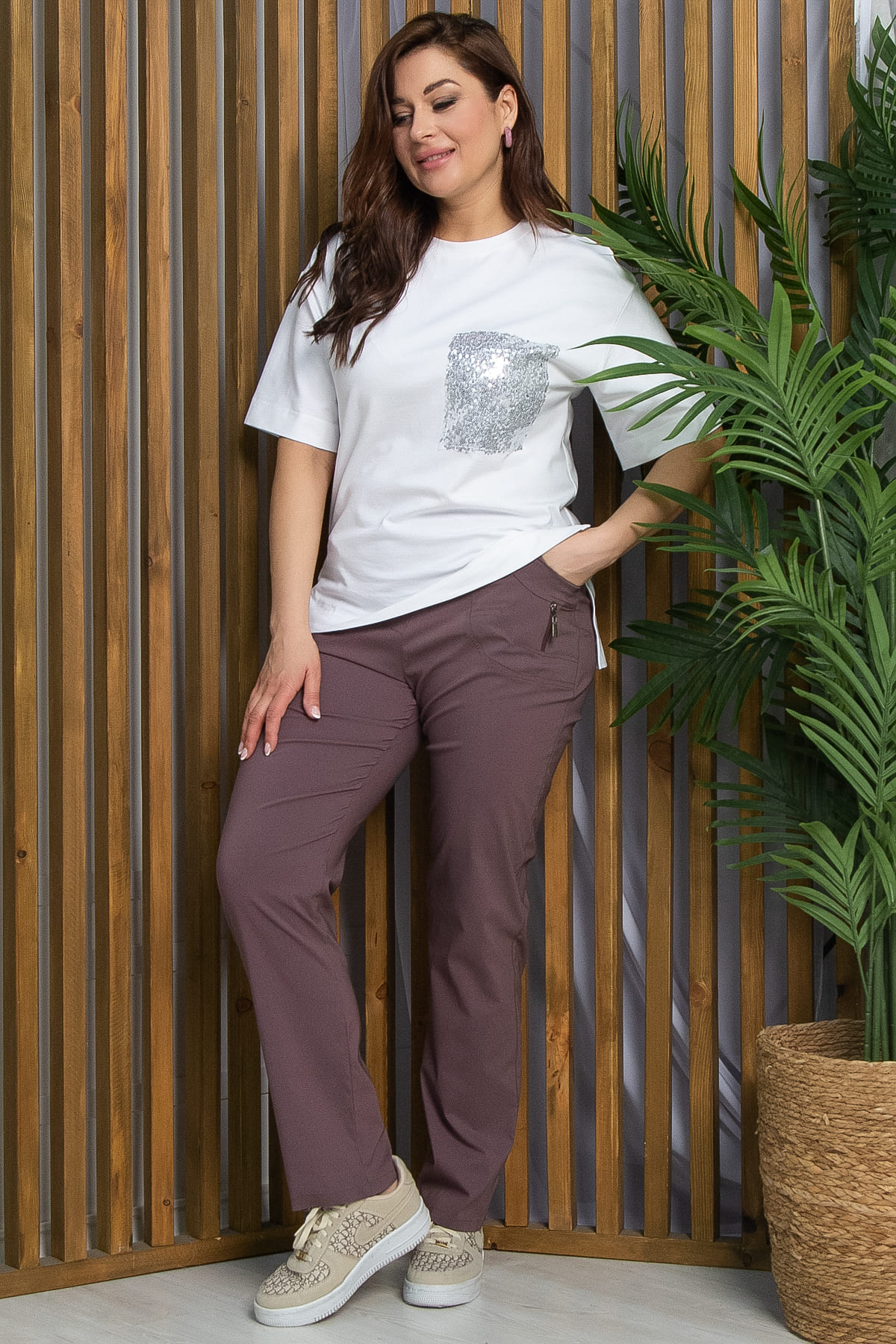Брюки прямого кроя, полной длины — это идеальный вариант для создания стильного и комфортного образа. Благодаря притачному поясу на резинке, они обеспечивают удобную посадку. Спереди располагаются потайные карманы с декоративными замочками, которые придают изделию изюминку.
