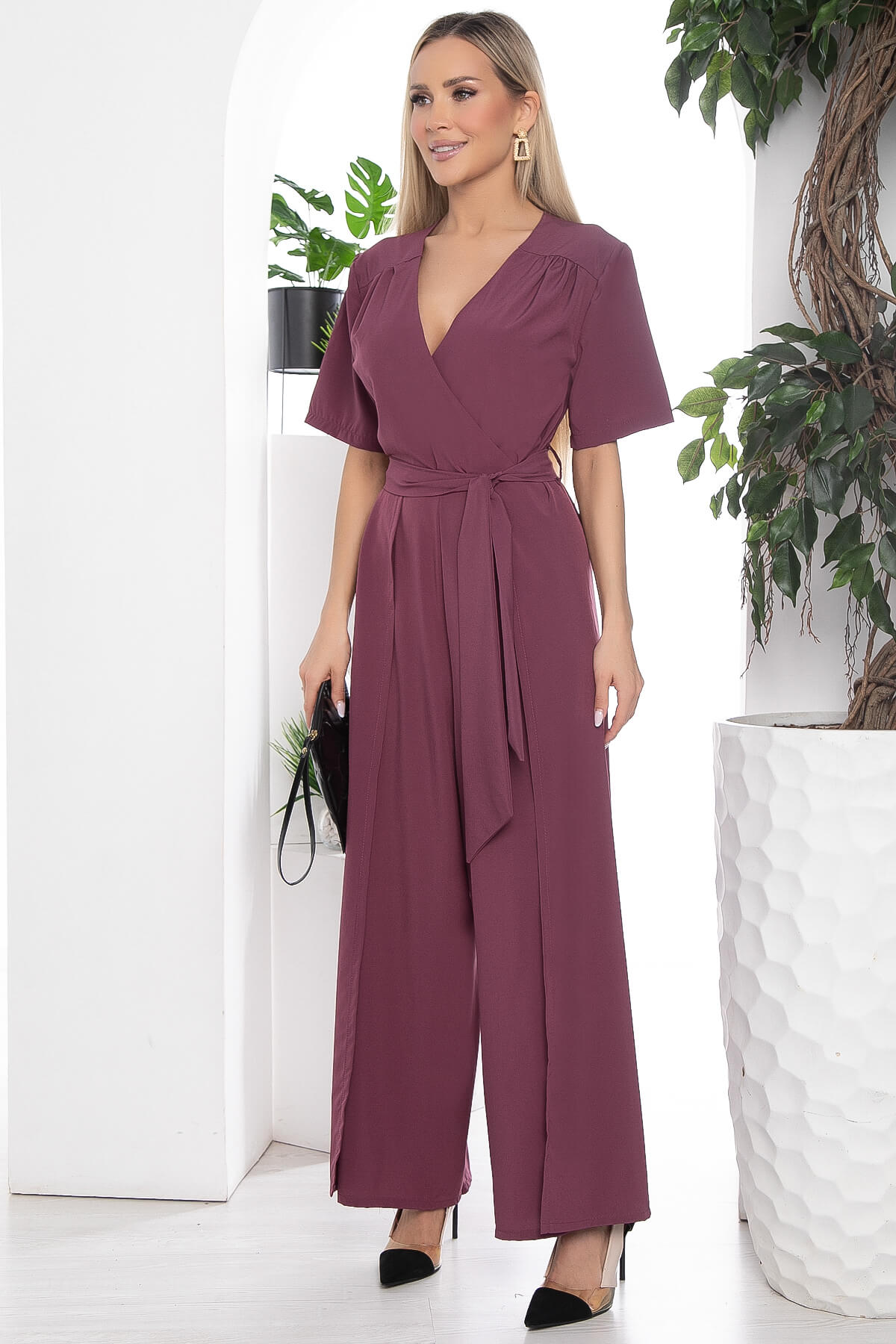 Шикарный комбинезон полуприлегающего силуэта, подходит для любой фигуры. Рукав короткий. Умеренно-глубокий V-образный вырез на запах, полностью закрытая спинка. Легкая драпировка в области груди, пояс на шлевках в комплекте эффектно подчеркивает линию талии, что обеспечит вашему образу утонченный стиль. Запахивающиеся штанины брюк придают всему образу легкость и чувственность, добавляя неотразимости. Застежка на потайную молнию по спинке. Без подкладки.