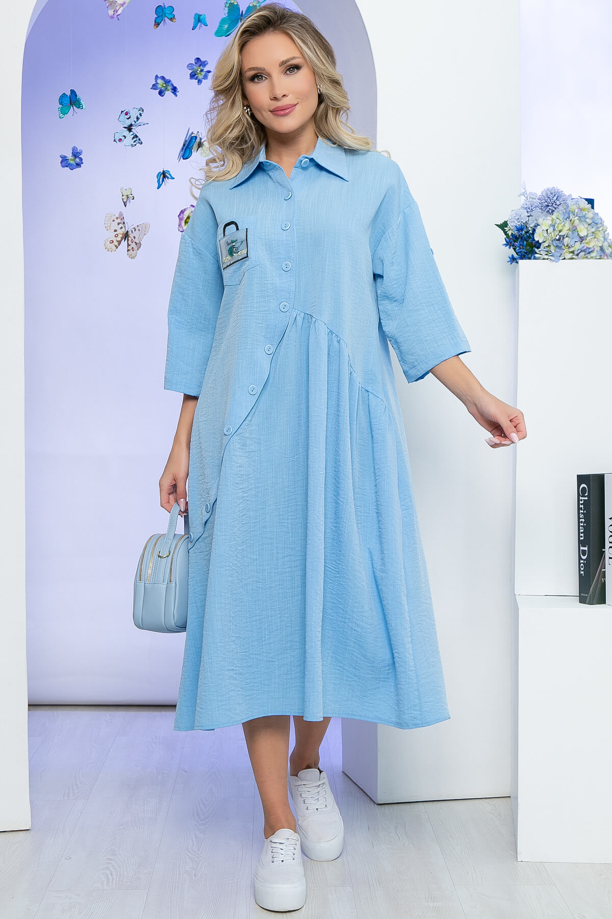 Стильное платье придаст Вам привлекательности, при этом образ получится достаточно сдержанным и комфортным. Платье будет отлично смотреться даже без аксессуаров, украшает образ карман с декором. Рукав втачной, со спущенным плечевым швом, три четверти, подворачивается на пату. Функциональные пуговицы только в верхней части платья, по юбке присутствует имитация застежки.