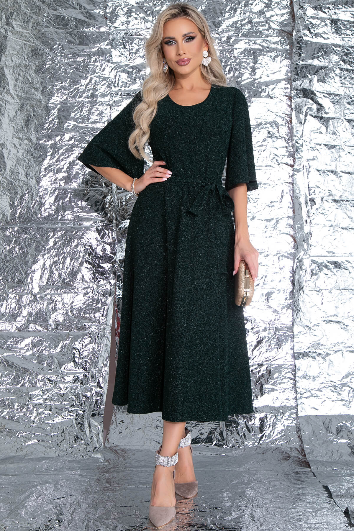 Вечернее платье из мерцающей ткани создаст невероятную атмосферу праздника. В таком платье вы точно будете в центре внимания. Оно достаточно сдержано, но в то же время наполнено акцентными деталями, что идеально подчеркивает вашу красоту. Изделие имеет втачной, укороченный, расклешенный рукав. По талии на резинке. В комплект входит пояс из основной ткани.
