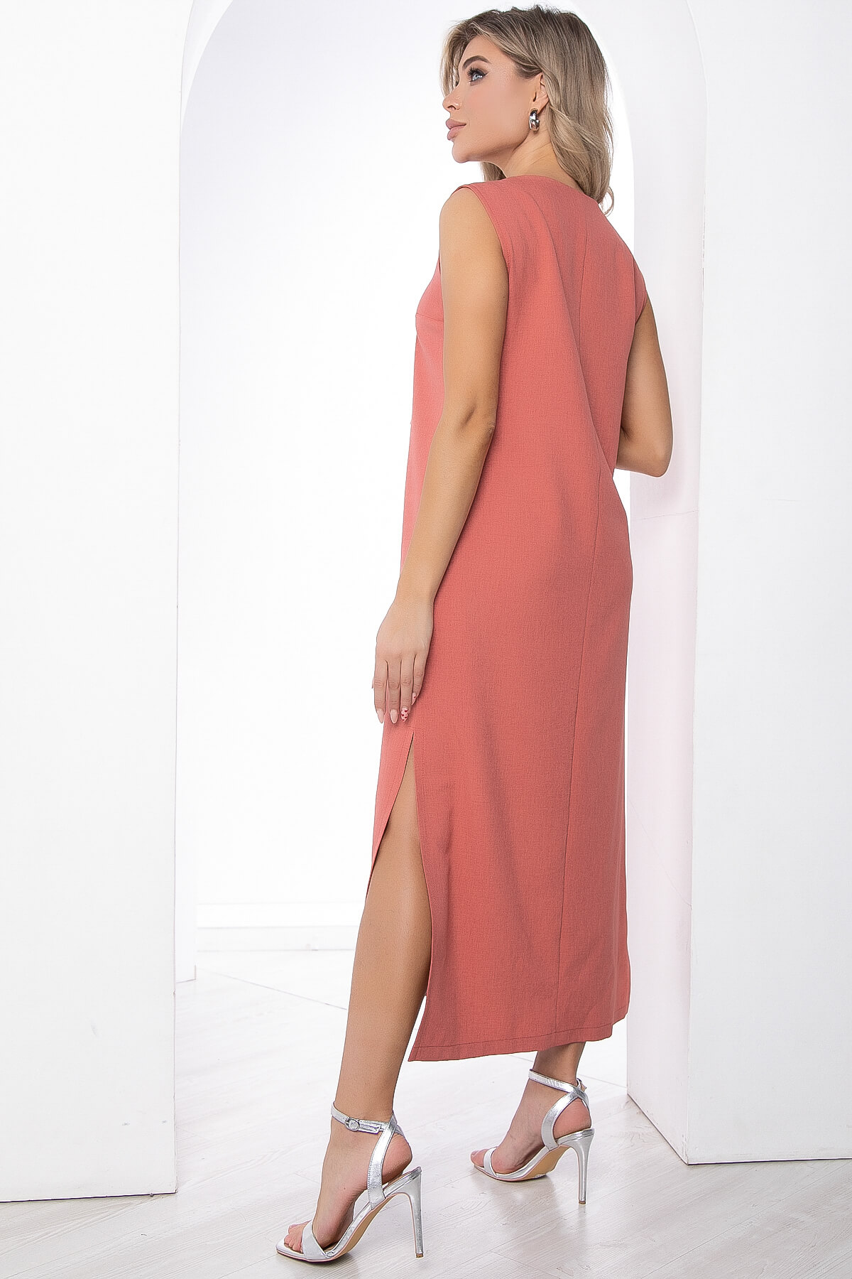 Стильное платье-сарафан яркого оттенка неприхотлив в уходе и выборе аксессуаров, но при этом является самодостаточным элементом образа. Платье без рукава. По бокам юбки разрезы комфортной высоты.