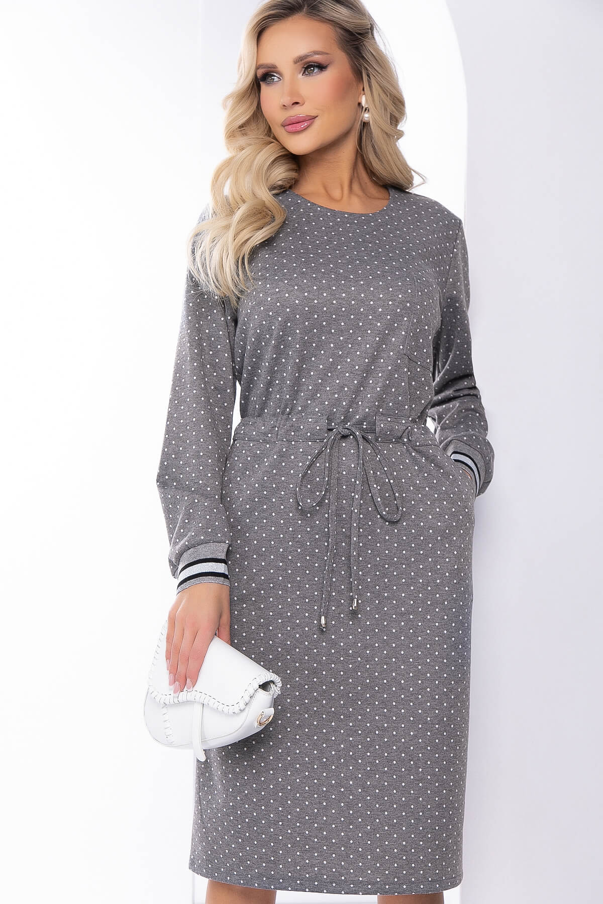 Элегантное платье из трикотажа прекрасно подойдёт для создания комфортного повседневного образа. Правильный крой и гармоничная длина обеспечат идеальную посадку. Изделие дополняет кулиска, которая подчеркивает линию талии. Рукав длинный, втачной, по низу контрастный манжет. Есть карманы.