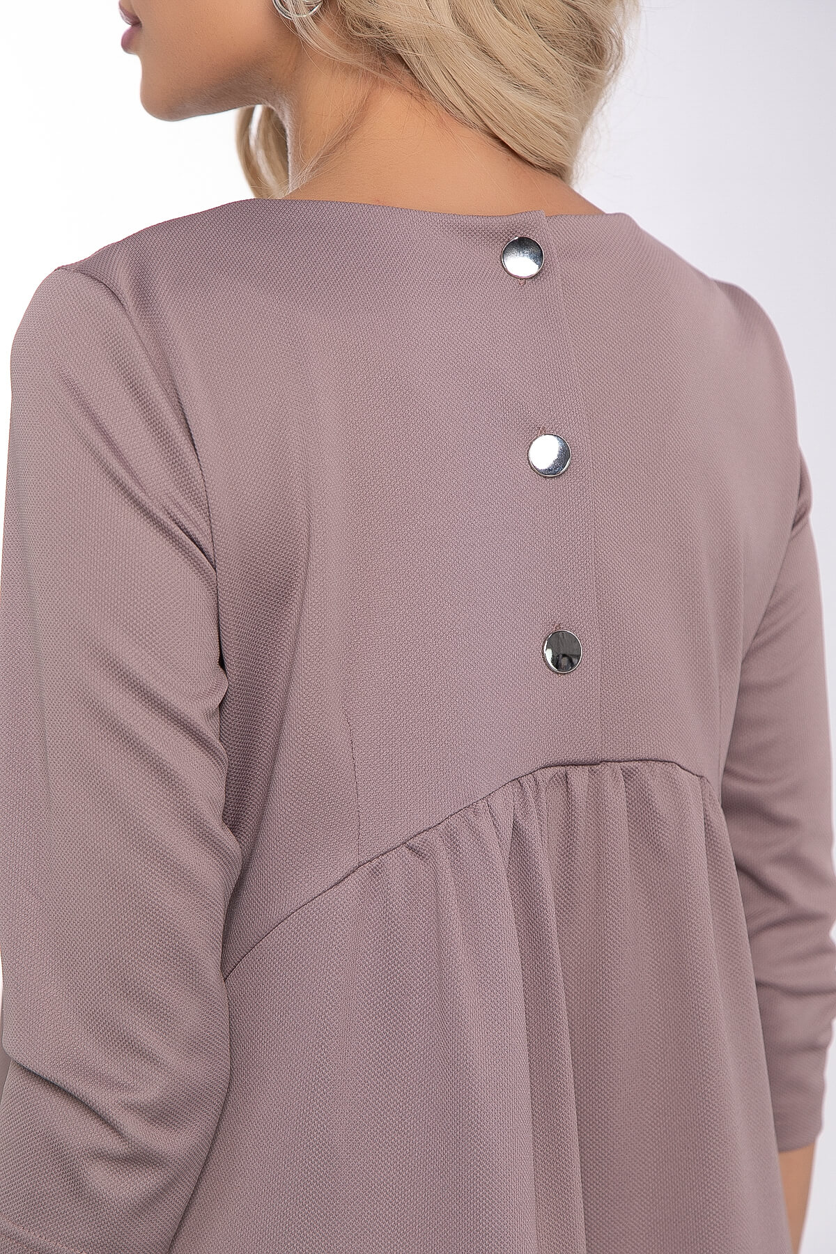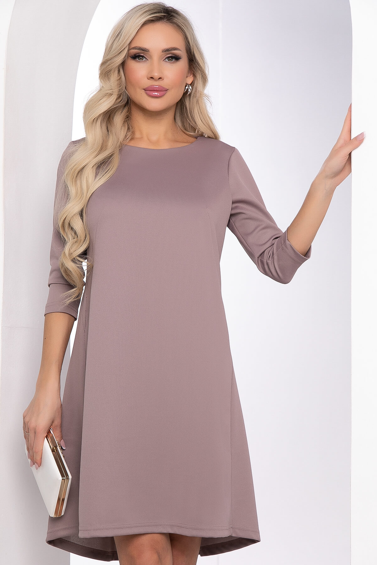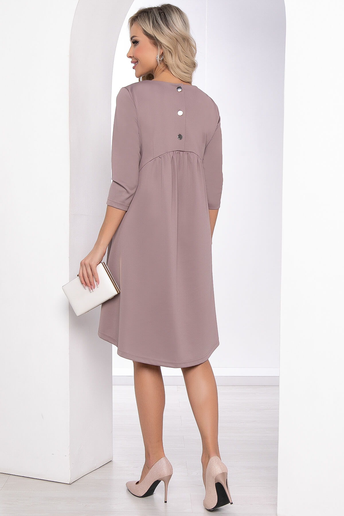 Очаровательное платье А-силуэта с асимметричным низом будет игриво смотреться на любой девушке. Такое трикотажное милое платье обязательно впишется в ваш повседневный гардероб. Оригинальная спинка с функциональными пуговицами придаст образу женственности. Втачной рукав 3/4, сзади на талии легкая сборка.