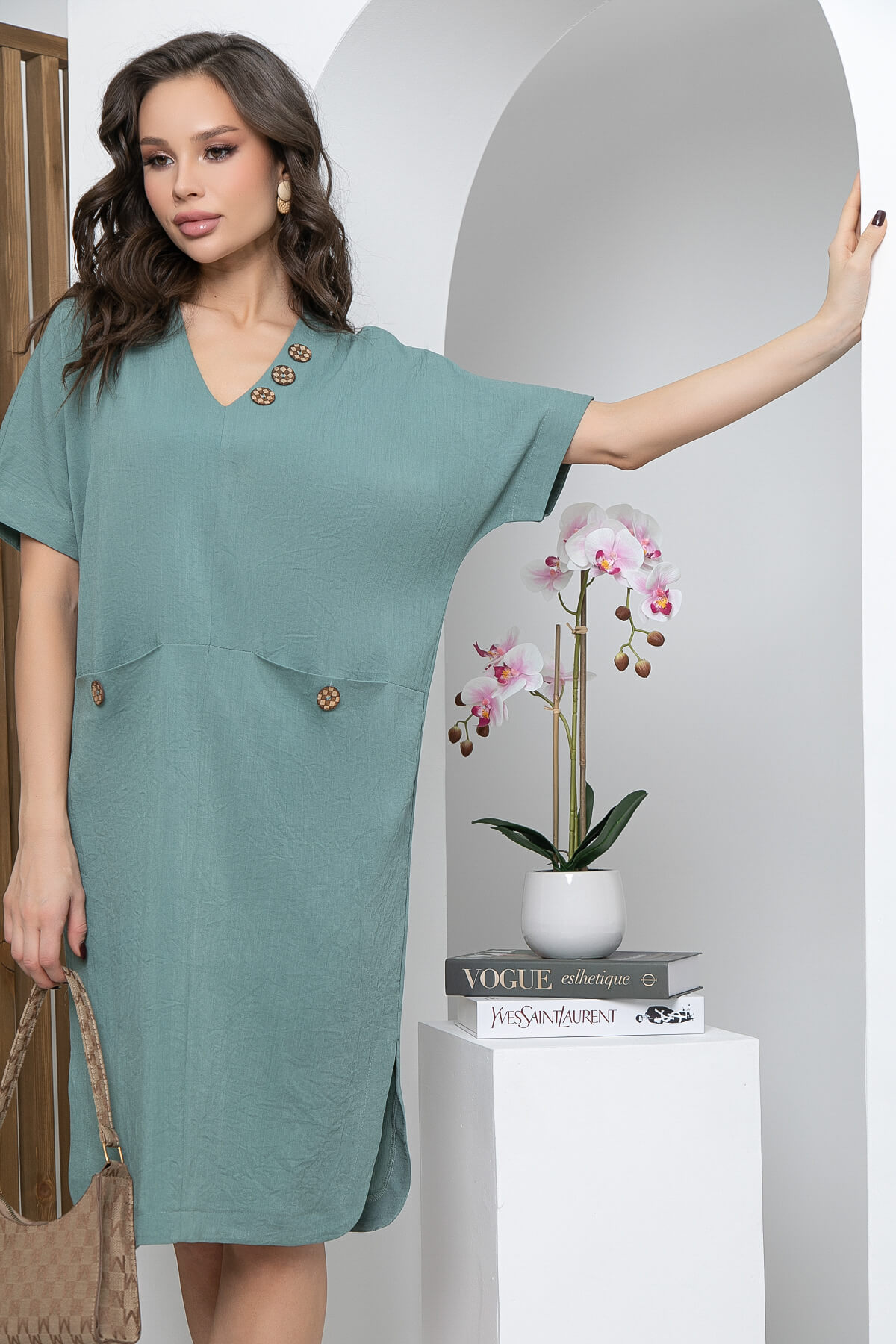 Элегантное платье прямого кроя позволит ощутить себя великолепно на любом мероприятии! Это отличный вариант на работу, прогулку или даже свидание. Изюминку образу придает декор в виде пуговиц. Рукав цельнокроеный. По переду изделия есть карманы.