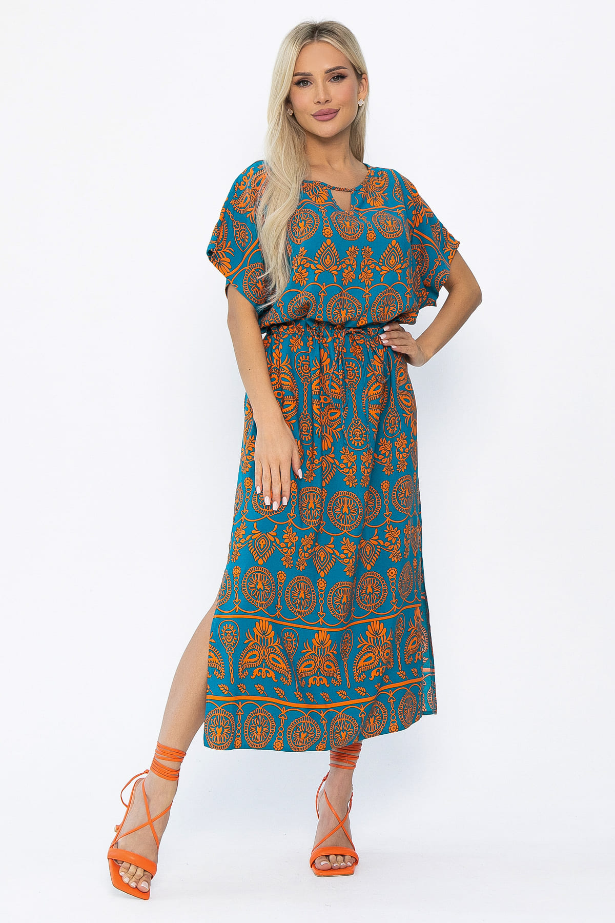 Платье Вистерия (лазурно-оранжевое) П13908-5М