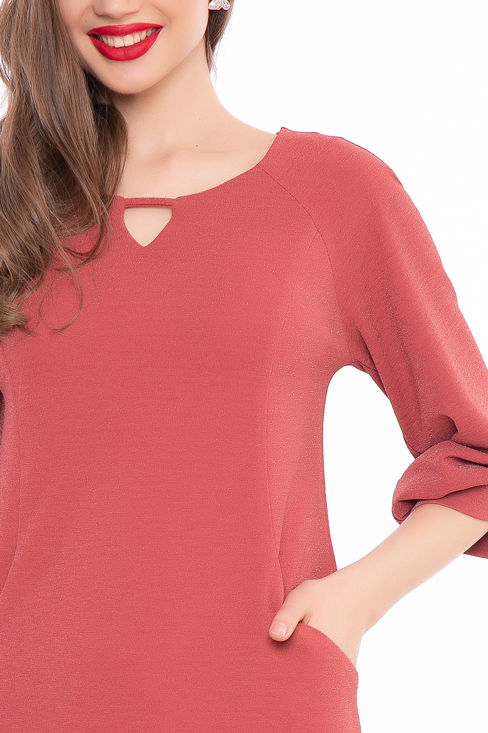 Эффектное трикотажное платье полуприталенного силуэта с люрексной нитью, которая придаёт платью загадочное мерцание. Подойдёт как для торжества, так и для повседневного образа.
