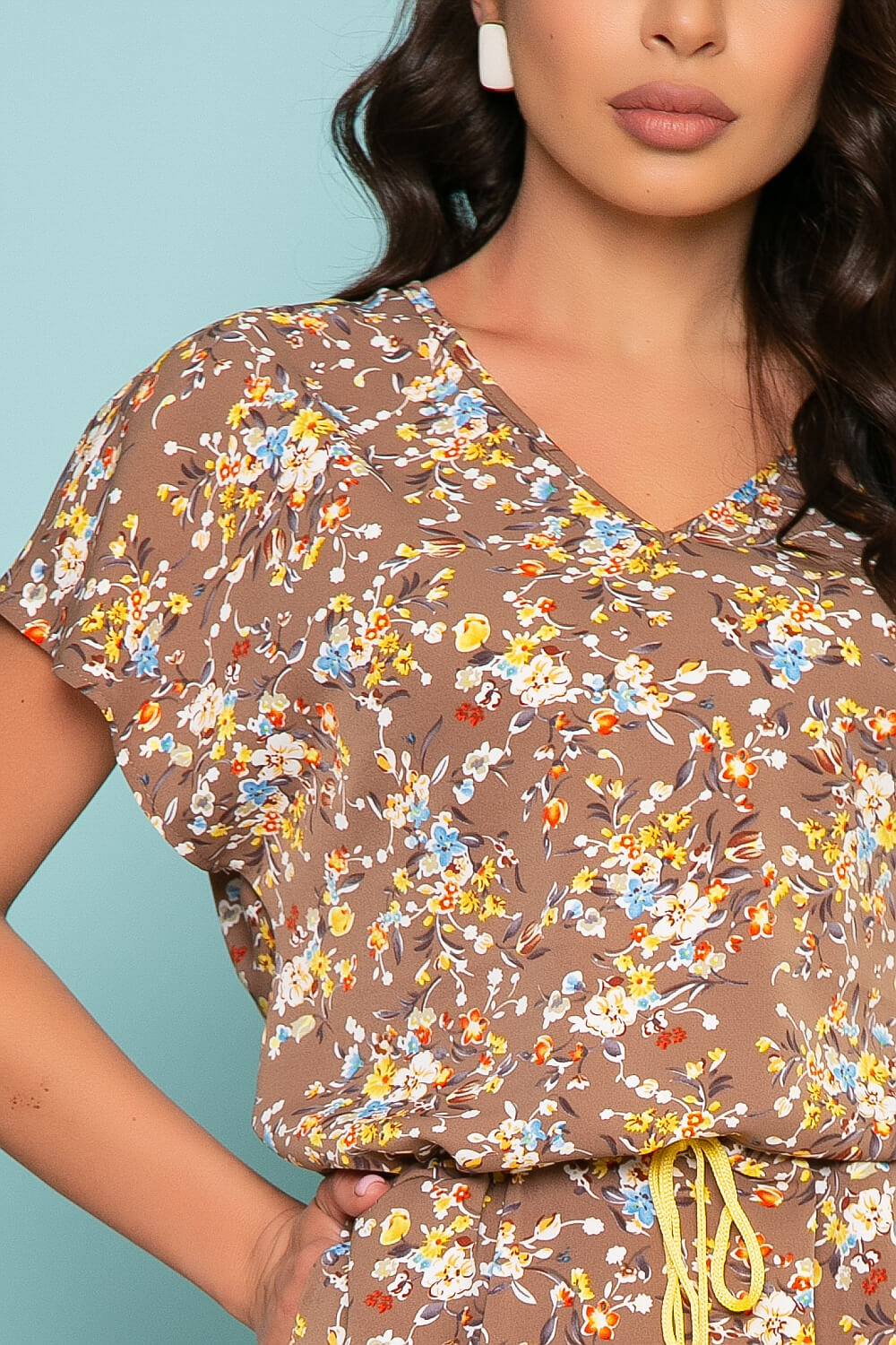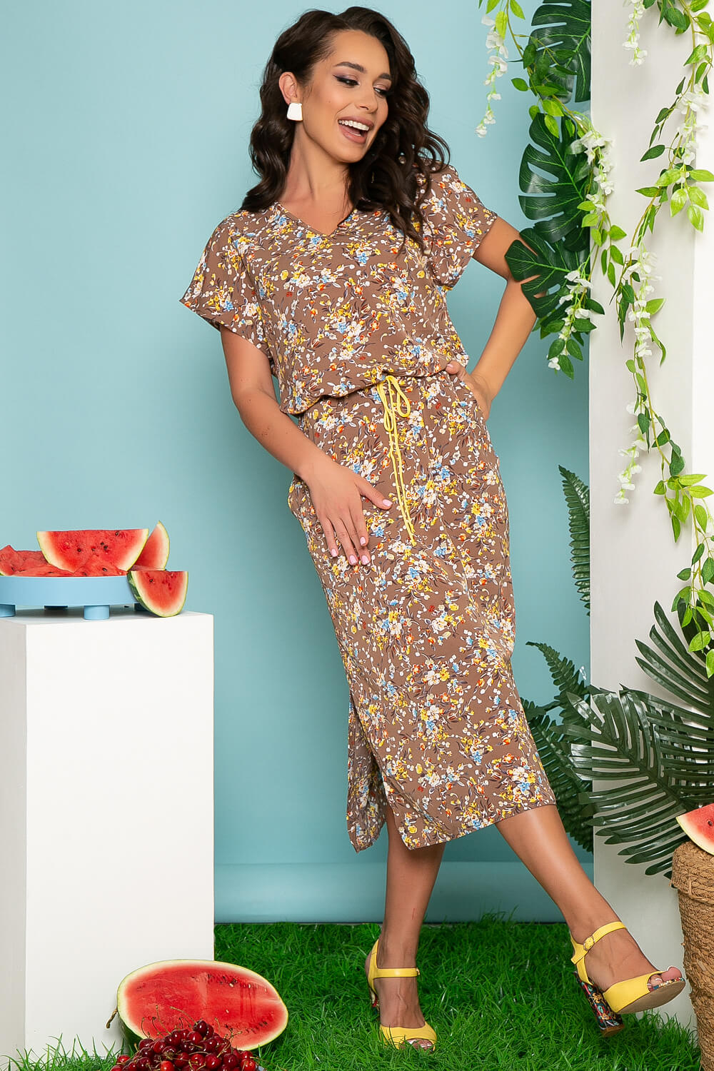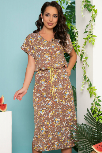 Платье на каждый день из легкой ткани прямого кроя. Талия на кулиске позволяет добиться идеальной посадки по фигуре. Рукав цельнокроенный, V-образный вырез горловины. В боковых швах - карманы, изделие без замков, без подкладки. По бокам разрезы.